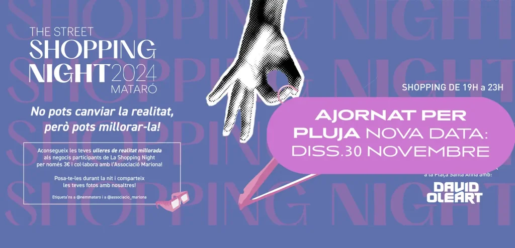 Les previsions de pluja per aquest dissabte obliguen a ajornar la quarta edició de The Street Shopping Night. La nit de compres, oci, gastronomia i música organitzada per NEM (Negoci Empresa Mataró) es posposa a dissabte 30 de novembre. La nova data coincideix amb el cap de setmana del Black Friday.
